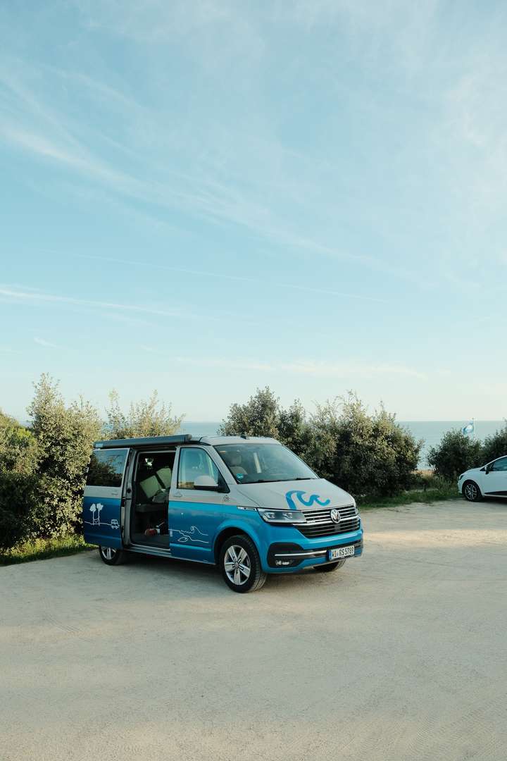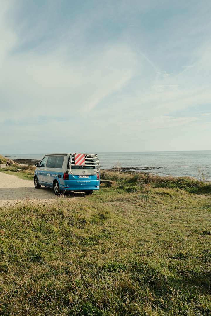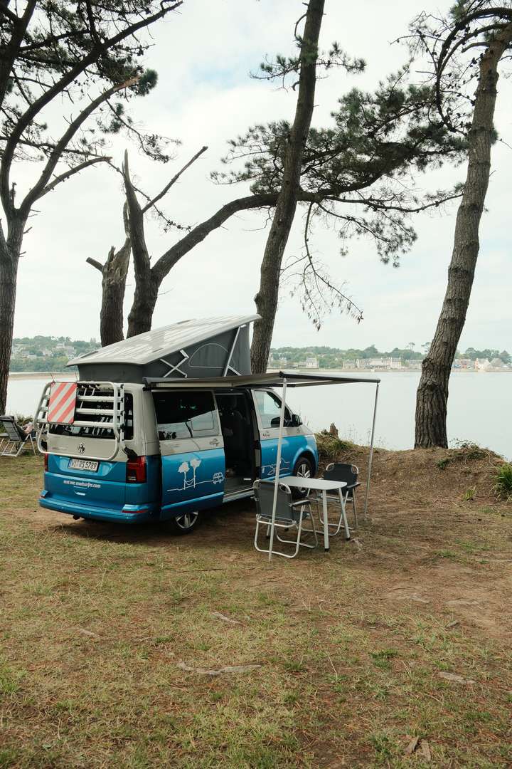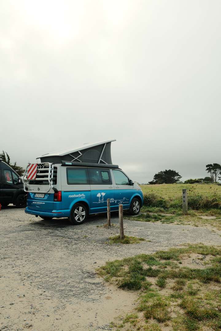 After 8h travelling by train, with stops in Strasbourg and Paris, we arrived (without delay!) in the beautiful city of Nantes. We picked up our VW T6 California Camper Van from roadsurfer.com without any problems and immediately hit the road. The first drive took us to Saint Nazaire, where we found a parking spot to spend the night and took our first (of actually not that many) swims in the Atlantic Ocean. We finished the day with our signature meal: spaghetti, cherry tomatoes, and Burrata.