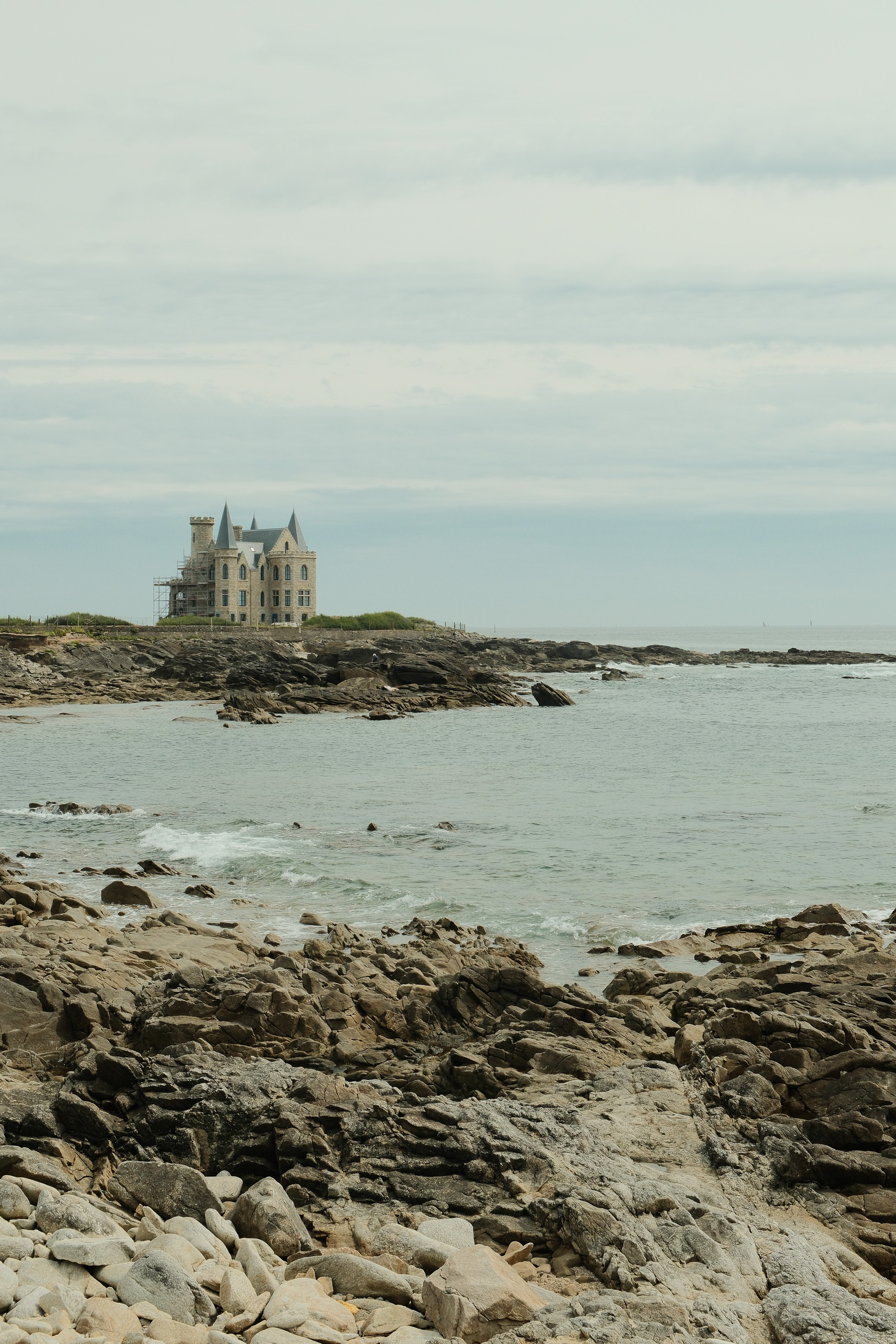 We started our first official road trip day with the obligatory coffee, packed everything up, and headed towards the Marais salants de Guérande. These 2'000 hectares of salt marches provide a unique landscape and is definitely worth a visit! We made a quick stop on the side of the road (photography-time for me, and Nutella bread for Rahel), took in the almost outer worldly view, and continued towards Quiberon. Close to the Château de Turpault there is a parking lot which provided us with a great option for strolling along the coast and having a lunch break.