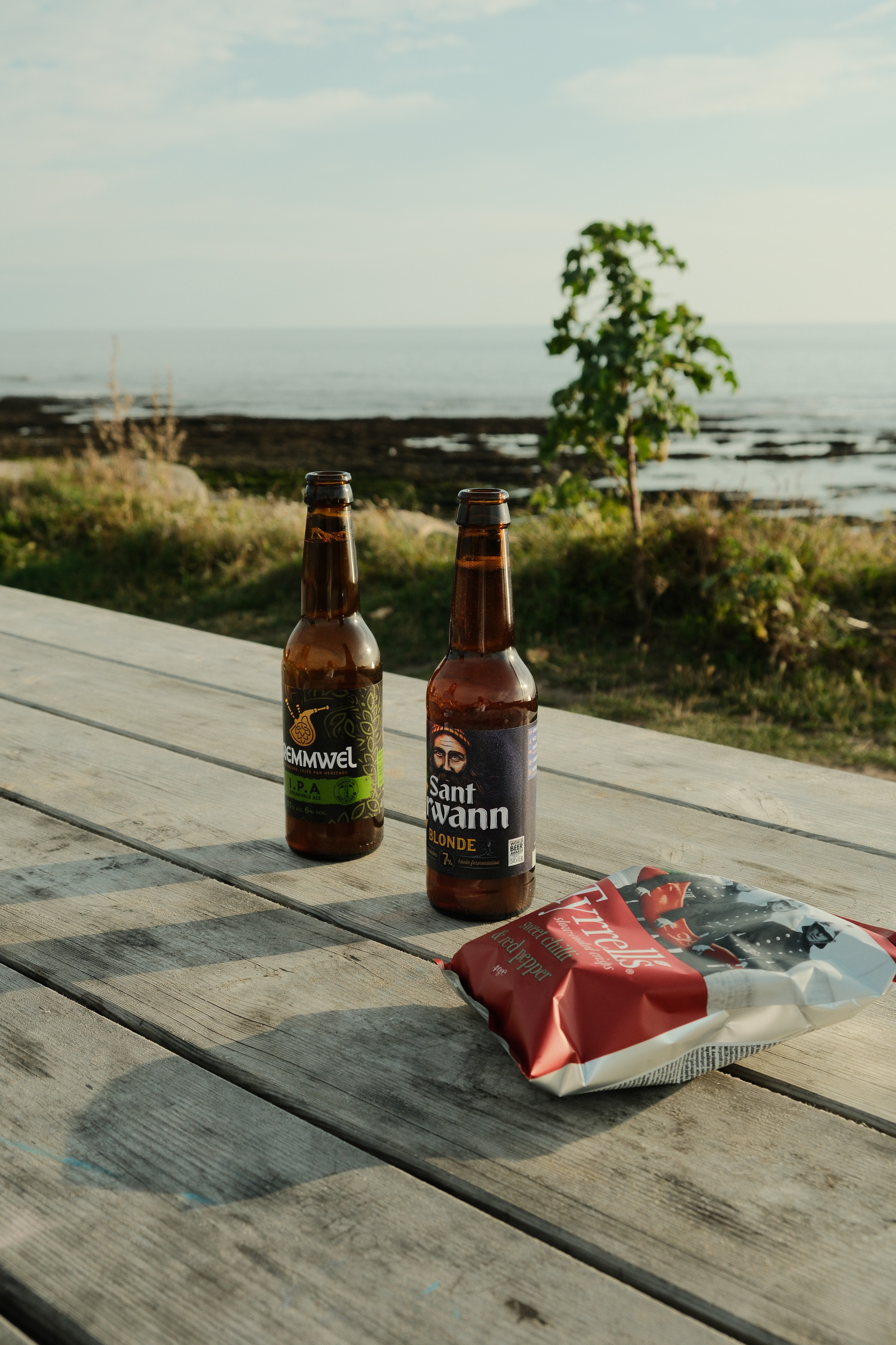 We drove from Saint-Cava straight to Roscoff, where we made our first stop. After discovering the city (or maybe village) we had the first Galette Bretonne, a specialty from Brittany which is very similar to the more well-known Crêpes. The afternoon took us all the way to Saint-Quay-Portrieux, where we were lucky again and found a beautiful camping with views directly towards the sea. The rest of the day was spent with discovering the local coast, some local beer and dinner (I can't remember what we had, but most likely self-made burgers with rice again or vegetarian chicken nuggets with rice - haute cuisine).
